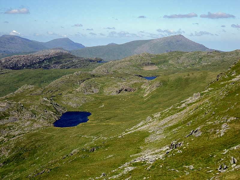 Llyn Llidaw, Glaslyn and Y Lliwedd from Garnedd Ugain