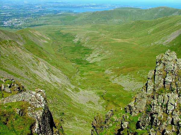 Llyn Anafon and coast from descent of Foel Fras,