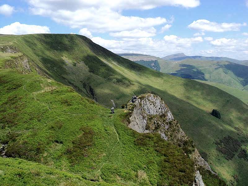 At the summit there was a nice cool breeze and I stopped for a drink and a 10-minute rest. The views were somewhat limited by the haze, but there was still quite a bit that could be seen. I was just pondering on the fact that nobody else was around on such a nice morning, other than a man in a van on a track below, when a couple arrived at the summit just as I had departed and then several others appeared as I walked along the ridge.