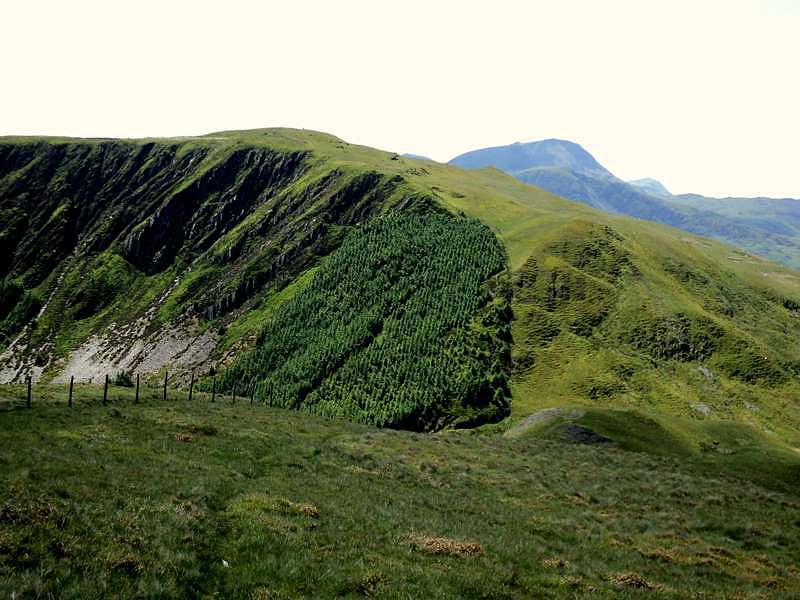 After dropping down to the pass of Bwlch y Ddeufaen, the route of a Roman road and also where electricity pylons cross the ridge, I stopped for a fifteen-minute rest and a drink at 15.25 before facing the steep ascent of Foel Lwyd. After the long traverse of the Carneddau, this is the point where I have previously found it very hard, but this time the steep ascent didn't seem so bad. I put this down to psychology, more than anything else, as I had been psyching myself up for this, having remembered past experiences when I had been unprepared for this demanding effort towards the end of the walk. It also helped having had a fairly lazy day yesterday, though this was only the same as when I did my first walk of the Cambrian Way ten years ago, whereas on my second walk, I combined Snowdon and the Glyders into a single day, which was quite exhausting and left me less fit for the Carneddau. As I was climbing up, I thought I could see Richard and his companion coming down towards the pass, but I couldn't be sure, though there weren't many other people about, so it was quite likely to be them.