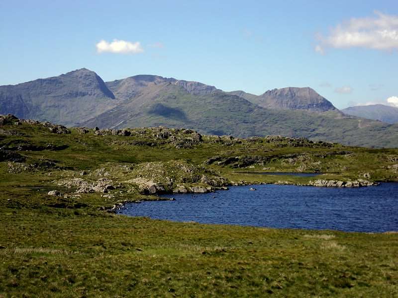 Llyn Bochlwyd from Bwlch Tryfan, with Y Garn, Elidir Fawr and Foel-goch