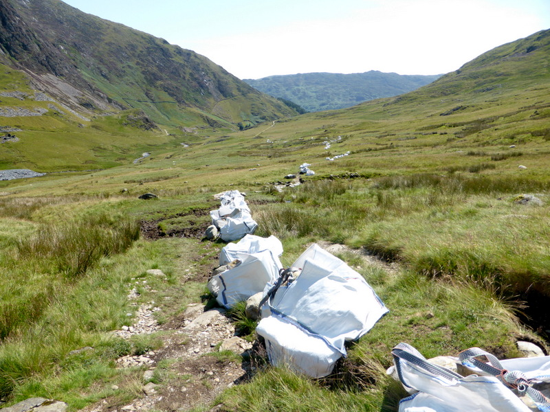 I mentioned the footpath problems to the farmer and he enlightened me on why this was occurring around here. Much of the land on this side of the Rhinogs has been declared a SSSI (Site of Special Scientific Interest) because of some rare plants that are unique to the area. Consequently grazing has been severely restricted or stopped completely in order to let the land revert to its natural state, which is blanket bog with long reeds and other bog loving plants. Farmers are severely restricted in what they are allowed to do to the land, so footpaths have suffered badly as a result.