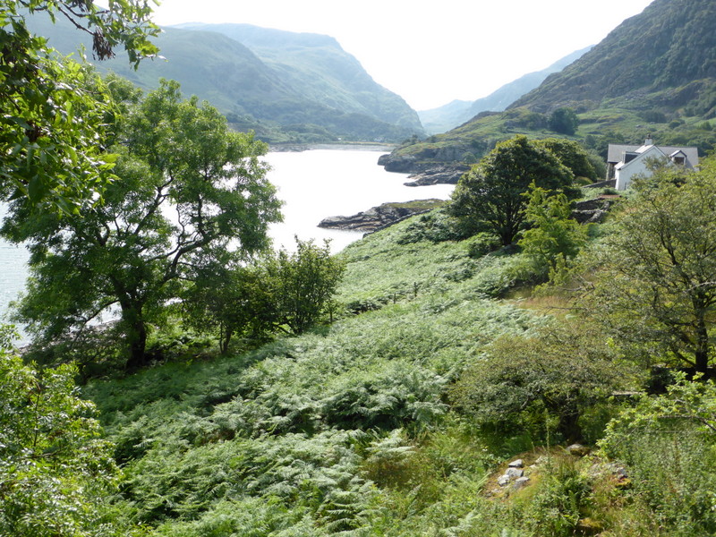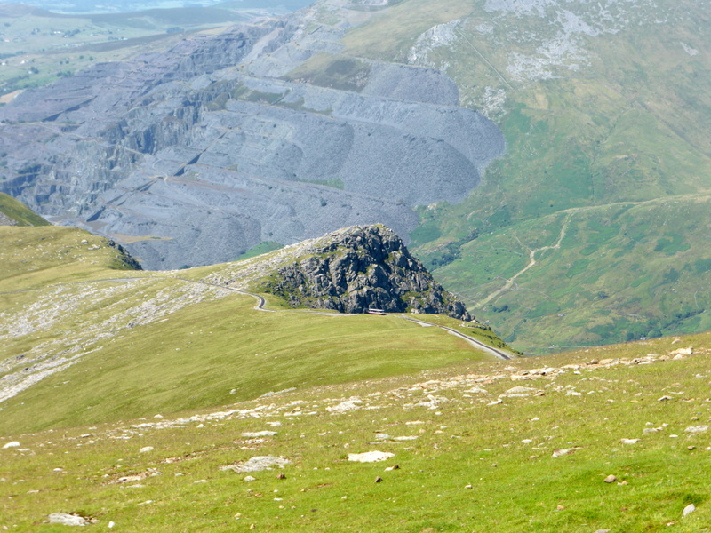 I got up ready for breakfast at 8am and set off just after 9am. The weather was warm again but with a bit of cloud around. I had turned down the offer of a packed lunch as I had to do some shopping for provisions in the village, so could get things for lunch at the same time. There was a convenience store just as I was coming out of Llanberis onto the A4086, so I called in and started looking round for the things I needed, especially something with which to make an evening meal. I soon found several things for snacks but a man was unloading four big trolleys that were wedged up against the shelf with ready meals and when he didn't seem to be getting any further with the job and went away I was able to shift them a bit so I could get to the shelves. I still didn't have the best access but managed to get a pack of ready made pasta plus a bolognese sauce. I would have preferred dried packets, but had to make do with the extra weight of them having water in - it wasn't really that much extra in the scheme of things.
