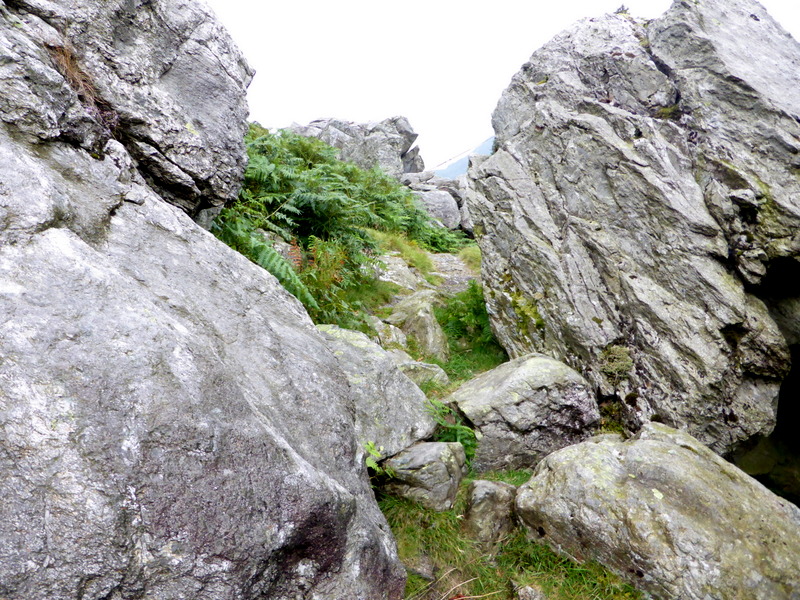 After clambering over the rocky area near the summit, there is the joyful sight of something that resembles a normal path for about half a mile on the way to Glyder Fach before an even more difficult rock scramble starts. The trouble with routes over rocky places is that it is often difficult to see where the route actually goes. This has been alleviated around here by the building of a series of large cairns to mark the way. The nearest rocky formation is Castell y Gwynt (Castle of the Wind), which just qualifies as a 3,000 footer in its own right. This consists of a lot of vertical rocks and is not easy to climb from the west, but is somewhat easier from the east. Glyder Fach is also very difficult to reach by going along the top of the ridge and the best approach is by a path skirting around the south side until reaching an easier boulder scramble further along, and this comes out between Castell y Gwynt and Glyder Fach. The main thing being to avoid the temptation to try for the summit too soon, but keep going round whilst there are still signs of footpaths until the easier ascent comes into sight.