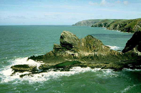 Gareg Wylan near Ceibwr Bay with Cemaes Head beyond