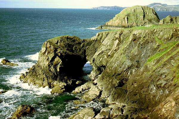 Natural arch near Pen Castell-coch - Strumble Head is in the distance