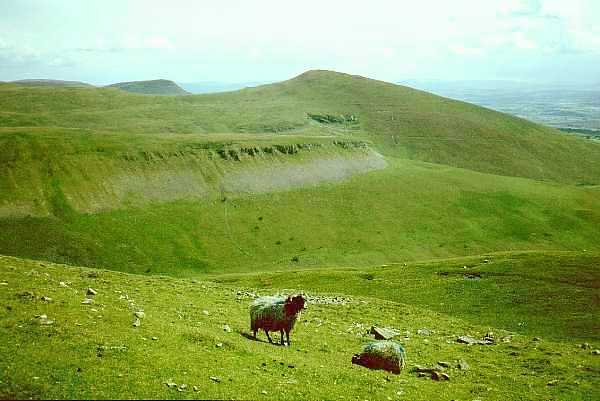 The weather was overcast with mist over Kinder Scout, but there were a few bright patches in the sky. My first consideration was to take it steadily as there was no rush and I hoped that it would be easier on my feet. The ground was very dry in most places, as there had been little rain in the past few weeks, so that would make the going over peat a lot easier. In fact, there had been so little rain that they were seriously talking of closing areas of the Peak District because of the fire risk. As I climbed to the top of Jacob's Ladder the mist had already started to lift and the top of Kinder was clear. I made the first error in route finding by ending up to the south of Kinder Low but this only added about half a mile to the route, as I was able to head across the top of Kinder in the general direction of Kinder Downfall. I soon regained the correct edge and reached the Downfall only to find that it was bone dry. I stopped for something to eat but was pestered by a sheep with a lamb, which were scrounging for food. I made the mistake of giving them an apple core and found that they then followed me all the way off Kinder to Mill Hill.