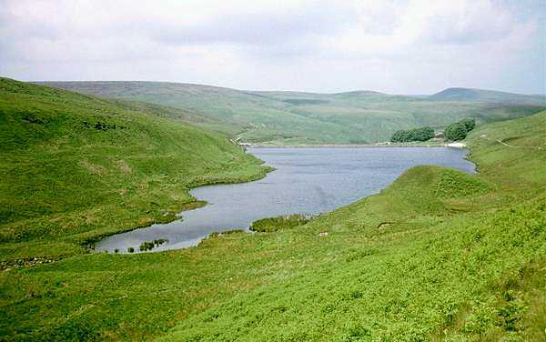The miles always seem so much longer when you feel you are lost as there is always the worry of going further and further off the route. It also seems longer when tramping over bleak featureless moors in the mist, so it was a very welcome relief when I did get back on the right path. Ickornshaw Moor is one of the bleakest stretches of moorland along the Pennine Way; later in the year when the heather is in full bloom and the sun is shining it may be quite pleasant, but on a day like this it is the sort of place to get away from as quickly as possible. Before long the path started to descend from the bleak misty moors and dropped below the cloud level revealing a good view of Ponden Reservoir, which was very low on water. On the way down I met one Pennine Way walker who was heading from Haworth to Earby and two others going from Ponden Hall to Thornton-in-Craven. I also met a chap who I didn't recognise at first, but who greeted me - it was the chap from the bed and breakfast who had missed the train so had decided to walk a bit of the Pennine Way coming back from where he had left his car.