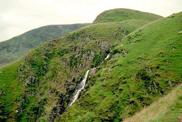 Breakfast started from 7.45, so I got there at the start along with the Geordie. It was a good breakfast by youth hostel standards and I was able to get myself ready and off by 8.50 with a hard day's walking ahead of me, not so much for the distance as for the amount of climbing and difficult terrain. The weather was quite promising with a mixture of sunshine and dark clouds as I made my way on the steady ascent past waterfalls towards Easdale Tarn, punctuated with a couple of steep climbs on the way. By the tarn it was very peaceful; the only sounds being from the birds, the occasional bleating sheep and trickling of small becks.