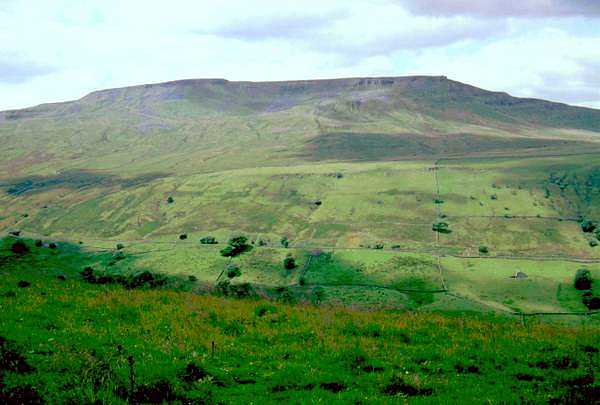 I took the road route into Sedbergh as it was a lot shorter, if less scenic. I had not got a long way to walk today, but there was quite a lot of climbing involved. After sending a postcard home and buying a few things, I set off out of town at about 10.10. The ascent of Winder started about half a mile out of town and was steep at first, more gradual for a while, then steep again towards the summit. The path was smooth and grassy and the views were ever widening as I ascended, with views of Garsdale, Dentdale, Morecambe Bay, Lakeland and, of course, over Sedbergh itself. An overcast sky and a biting northerly wind deposed the earlier sunshine, though the weather looked more settled than it had been over the past two days. I took shelter by the trig point after checking out what could be seen on the orientation table, which was erected at the millennium. The route of tomorrow's walk over Wild Boar Fell and Swarth Fell was in view, as I made my way along the fairly level ridge leading to the ascent of Arant How. The route bypasses the summit to the east, but I took the steep path up to the top, as it seemed a pity to miss it out for the sake a little extra climbing. As I got higher, Penyghent came into view so that I could now see all of the Yorkshire 'Three Peaks'.