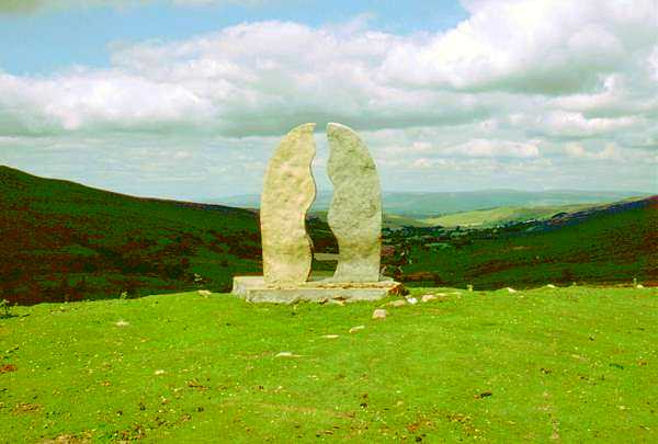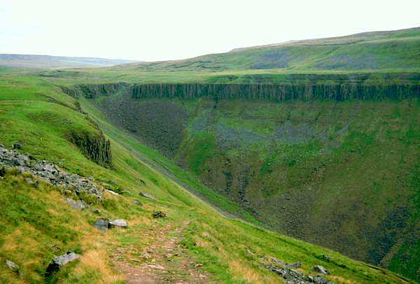 Hellgill Force waterfall is quite close to where the route crosses the B6259 road and the railway, so I took a quick look as I passed, though there was not a lot of water flowing over. This is a very tempting spot for a rest stop, but I decided to press on to the day's halfway point just before the ascent of Mallerstang. A lovely, gently sloping, grass road called High Way runs part way up the side of the fell with marvellous views of Wild Boar Fell, Mallerstang, the Eden Valley with Cross Fell in the far distance. At the highest point of High Way, near where the route turned off up a steeper slope to Mallerstang, was a large sculpture 'The Water Cut', adding an extra dimension of interest to the view, though it is not to everyone's taste. Personally, I quite enjoy these things so long as they are not out of keeping with the surroundings, though some people prefer to leave the landscape untouched.